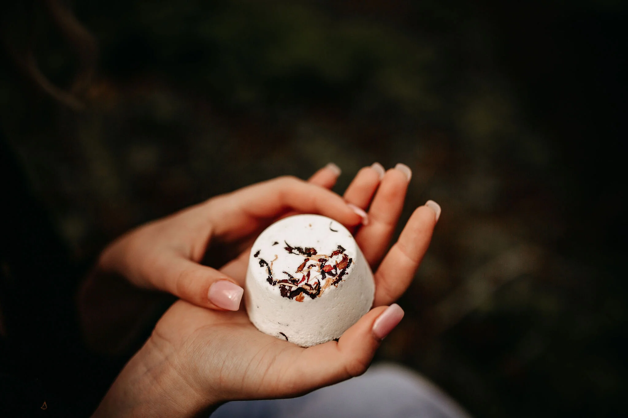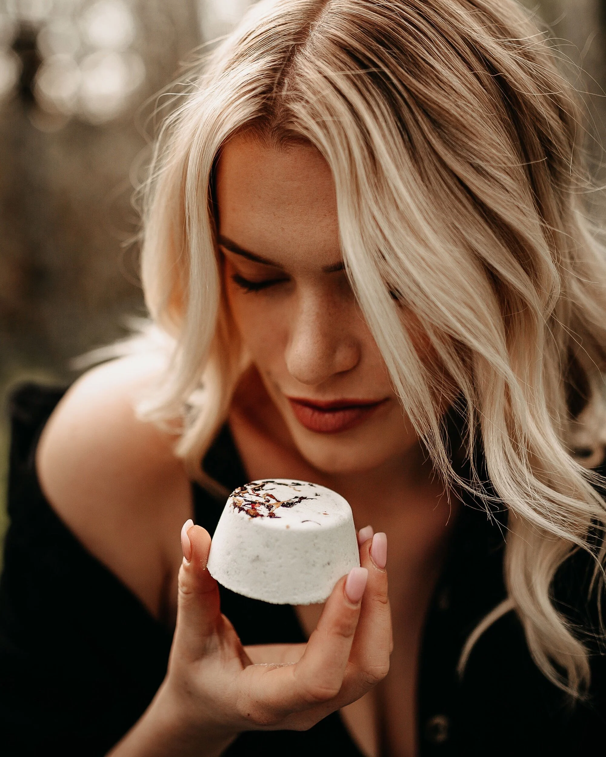 Bright, sweet, and happy. Just like you! Add this bomb to your bath and enjoy the notes of sparkling passion fruit , sweet peach nectar and topped with luscious white peach tea, marigold and petals